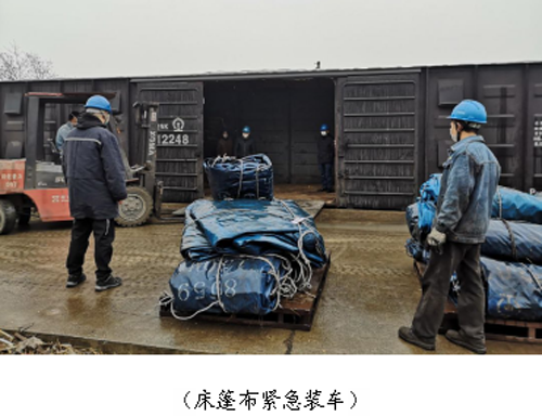 2月1日,川能量力公司接到成都铁路局急电,有近200床篷布作为救援物资急需运往武汉铁路局舞阳车站。时间就是生命,川能量力迅速响应,提前备货、专人引导,抢时间抓效率,优先保证出库,在30分钟内完成装车,第一时间送达成都铁路局驰援武汉。