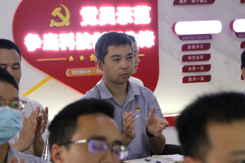在岷江公司犍为航电枢纽,来自港航公司的宣讲队员王代银援引了一个故事讲述党的初心使命:“去年的高温保供,对于航电人是个不小的挑战。面对‘嘉陵江变嘉陵工’的缺水空档期,港投航电人抢抓工期,集中消除设备隐患,为江水再度充盈时,机组能够以最佳状态满负荷运转做好充足准备。一线航电同志顶着60多度的高温,在发电机舱中挥动着扳手,一干就是4个多小时……”在座的一线同志感触很深,纷纷回忆起了去年那段最艰难的时光。