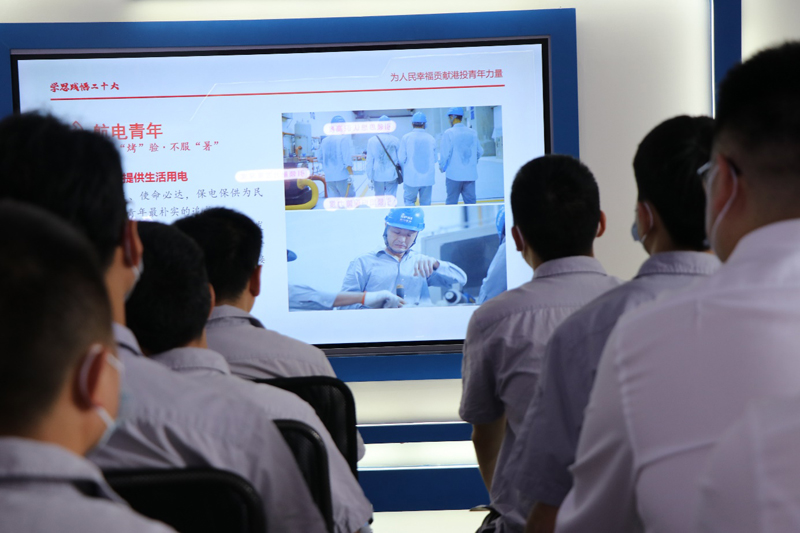 在岷江公司犍为航电枢纽,宣讲队与一线同志共聚“张鑫劳模和工匠人才创新工作室”,在发电机组的“见证”下开展理论学习。