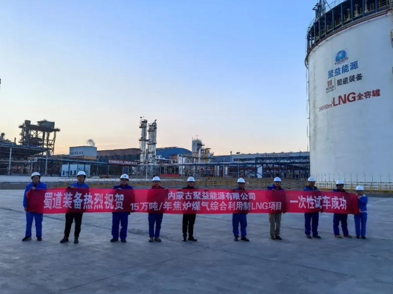 近日,由蜀道装备公司承建的内蒙古聚益能源有限公司15万吨/年焦炉煤气综合利用制LNG项目,实现全系统一次性开车成功顺利投产运行,为集团首季发展注入强劲动能。(蜀道集团)