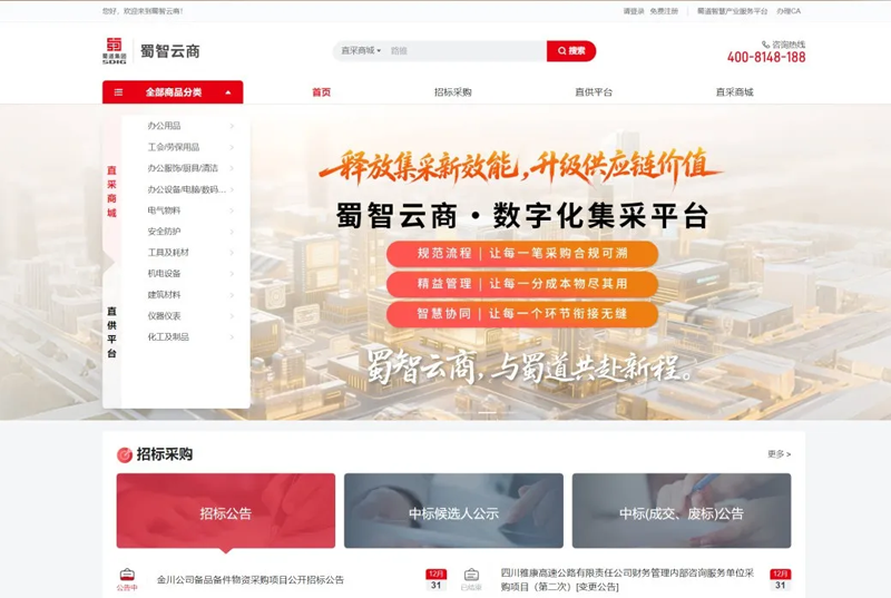 一键集采,全程数字化!蜀道集团“蜀智云商” 平台正式启用