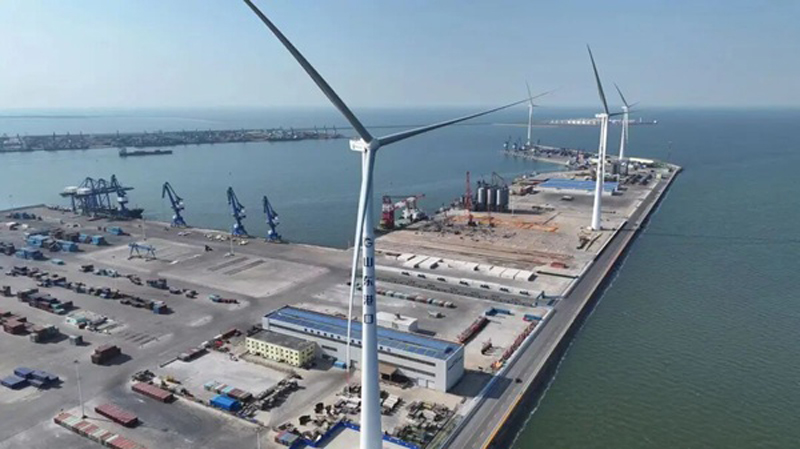 目前,山东省港口集团在多港区推进清洁能源项目落地,其中,渤海湾港潍坊港区4台分散式风机投入运行,日照港岚山港区分散式风电一期项目风力发电机实现并网发电,青岛港自动化码头以清洁能源为动力开展作业,烟台港客滚码头部署光伏系统。通过全域布局,山东港口从单一装卸枢纽向绿色能源综合节点转型,为产业链上下游的低碳协同发展提供支撑。