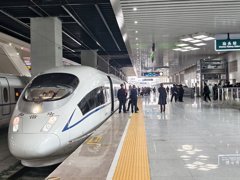 汕汕高铁汕头南至汕头段线路全长19.8公里,设计时速350公里,全线核心控制性工程为汕头湾铁路隧道。该隧道全长9781米,作为世界首条350公里设计时速单洞双线高速铁路海底隧道,穿越17条断层破碎带,其中8条为活动断层,施工难度国内外罕见。经过数年奋战,汕头湾铁路隧道于2025年3月26日成功贯通。该段顺利开通,标志着我国高铁海底隧道技术实现又一次重大突破,为国内外复杂地质海底隧道施工提供了有益的参考和借鉴。随着汕头南至汕头段开通,汕汕高铁正式进入汕头市区,并借助汕头站11台24线的硬件支撑与枢纽功能,运能潜力将全面释放,汕汕高铁从目前日均开行24对列车提升至50对以上,并开行经汕头站往华东地区的列车,进一步拉近粤东地区与粤港澳大湾区、长三角城市群的时空距离,强化汕头的交通枢纽地位。