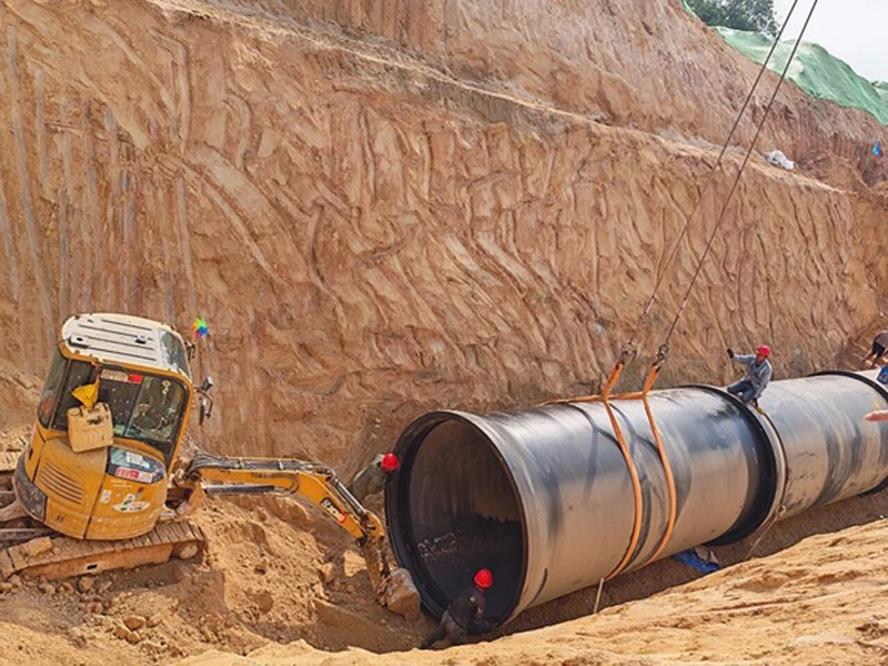 自2026年1月12日以来,二期第二标段DN2800管道铺设有序推进。据项目部负责人介绍,DN2800管道管径比过去常用的DN1000管道增加1.8米,但输水能力却提升近20倍,完美契合九龙江调水工程长距离、大流量的调水需求。不仅如此,DN2800管道具有耐腐蚀、密封好、工期短、运维成本低等优势,直击传统大口径输水工程周期长、压损大、维护贵的行业痛点,为长距离输水安全提供了可靠保障。此外,管道安装还无需现场焊接与二次防腐,安装效率极高,