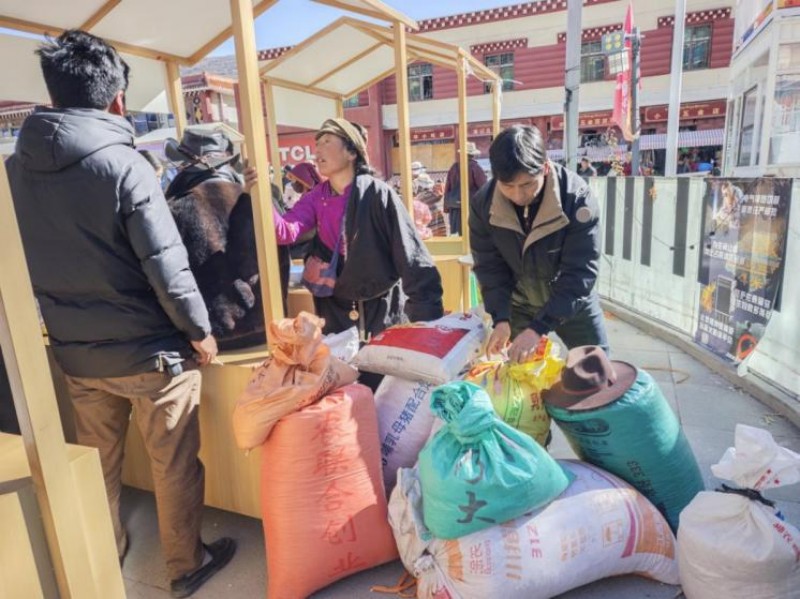 年过六旬的达仁吉老人也收获满满。他带来的两筐人参果和几罐酥油早早售罄,他笑着说:“以前从村里到县城,山路难走,坐车又贵,卖不了几个钱。现在工作队统一组织,车接车送,还不收摊位费,我们只管把产品带来,剩下的他们全包了!”他感慨道:“以前是挑着担子赶集,现在是坐着车把钱赚,这日子,真像酥油茶一样,越熬越香!”