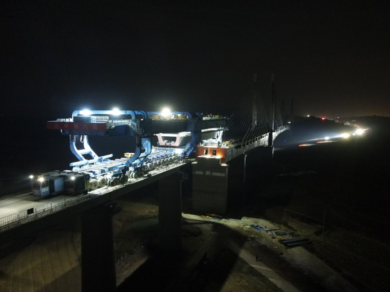 “标段内最大运距20.9公里,最大纵坡20‰,设计采用的32米箱梁单孔重量达725吨,24米箱梁重563.2吨,28米非标异形梁因尺寸特殊、受力复杂,对施工设备与工艺精度提出了更高要求。”据参建项目部负责人介绍,为保障架梁施工安全高效,项目部结合线路情况及制梁场位置,投入JQ900A型架桥机、YL900型运梁车等专业运架设备,围绕“安全第一、预防为主、综合治理”的原则,构建起“梁场集中预制、专线运梁、精准架设”的全流程架梁施工体系。