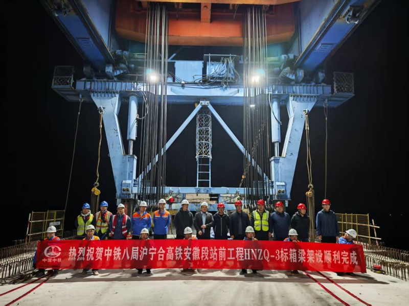 近日,随着最后一榀长32米、重约725吨的箱梁稳稳落在跨沪陕高速公路特大桥的桥墩上,由中铁八局承建的新建上海至南京至合肥高速铁路(以下简称“沪宁合高铁”)安徽段站前工程3标全部箱梁完成架设,为沪宁合高铁全线按期通车奠定了坚实基础。