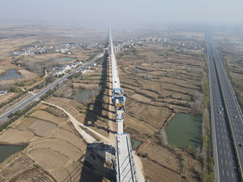 沪宁合高铁全长约554.59公里,设计时速350公里,是我国“八纵八横”高铁网沿江通道的重要组成部分,也是沪渝蓉高铁的东段线路组成部分,线路起自上海宝山站,途经江苏省苏州市、南通市、泰州市、扬州市、南京市及安徽省滁州市、合肥市,接入既有合肥南站。全线分段建设,其中安徽段全长约103公里,中铁八局主要负责沪宁合高铁安徽段站前工程3标的施工任务。