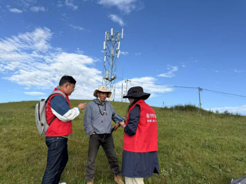 而这流动服务能稳稳落地,背后是扎在草原深处的通信“基石”。2024年,中国移动四川公司在实现村村通5G基础上,通信工程车开进草原,在牦牛群旁、山坳里竖起50余座基站,为阿坝县15个乡镇70余个远牧点都连接起移动信号,让全县6000余名牧民满格信号。