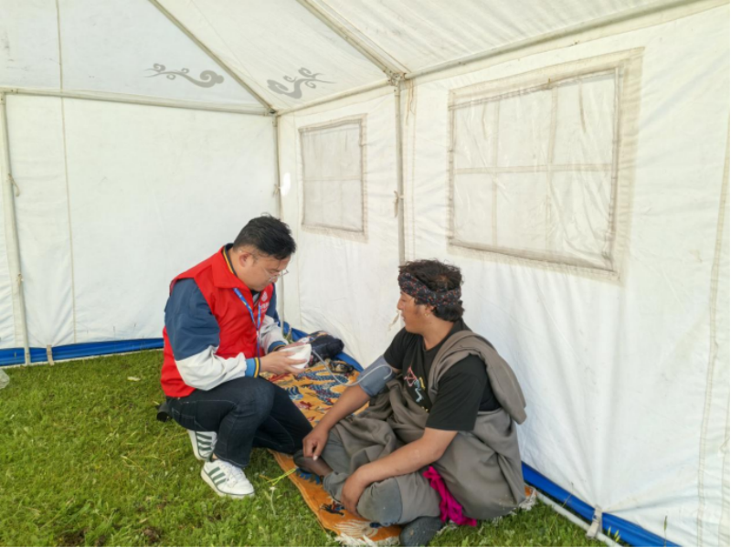 临走时,尕里大叔提到自己的血压有点高。泽让卓玛和同事迅速拿出血压计:“大叔,我们帮你量量血压。”这顶帐篷里的“暖心事”,早不止于通信。帐篷内,信号放大器、业务终端、应急充电宝、血压计、藏汉双语服务卡一应俱全,甚至备有常用药品,只要牧民有需要,他们都会第一时间提供帮助将数智便利与暖心关怀送到牧民身边。作为团队里的“双语担当”,泽让卓玛还承担起翻译的角色:“很多藏族老人不会写汉字,我们就用藏文登记。”她边说边递给尕里大叔一张藏汉双语的服务卡片。从办业务、装宽带,到量血压、递药品,这流动的营业厅就像一条暖绳,把分散的牧民和贴心服务紧紧拴在了一起,让牧民们在时代的浪潮中同享数智幸福。