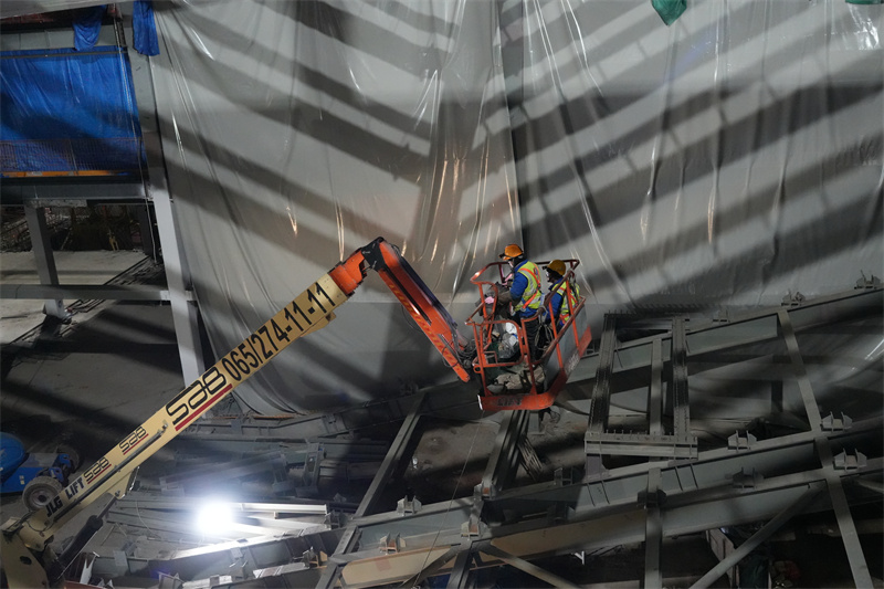 在10号连廊,24岁的施工管理员张家豪正紧盯暖通管道的安装细节。“支架螺栓必须按扭矩紧固到位,保温层接缝要做加强密封处理。”他的叮嘱简洁明了,工人们往往最能理解。移至钢筋绑扎区,他俯身用手检验钢筋网格的牢固度,“每根钢筋的位置都关系到整体安全,不能有丝毫偏差。”而当问起连续两年未回家过年的感受,他说:“肯定想家,但看着工程一点点成型,我很自豪,我父母也为我感到骄傲。”