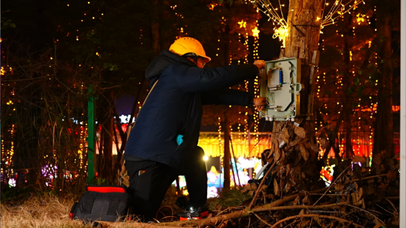 从高清视频拍摄、实时直播,到线上购票、智能导览,再到整个园区的智慧管理,高速稳定的网络让灯会的通信体验一路“丝滑”。这份“丝滑”的背后,则是无数人的坚守付出。华灯绚烂、人声鼎沸时,中国电信的通信保障人员在园区的各个角落穿梭巡查,这是他们的灯会保障日常。“美食区的摄像头要重点检查,不仅要保障网络传输,还要支撑食品安全AI监控;各个区域的通信设备也不能漏,一天步数基本都要2万步。”中国电信自贡分公司装维工程师滕建宇擦着额头的汗说。记者了解到,中国电信还为园区调配了应急通信车,以应对春节期间激增的客流。