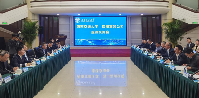 10月21日,四川富润与西南交通大学举行座谈会,在双方前期良好沟通的基础上,共同探讨产学研融合发展路径,进一步明确了以“资本+产业+科创”为核心的协同发展路径,围绕共建创新平台、推动成果转化、共育高端人才等方向达成多项战略共识,为双方持续深化合作按下“加速键”,标志着双方合作进入系统性推进的新阶段。西南交通大学党委书记余敏明,党委副书记、校长闫学东,四川富润党委书记、董事长秦明,党委副书记、副董事长、总经理胡岷参加座谈。