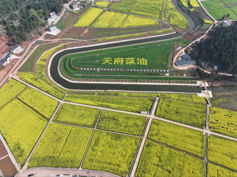在粮食安全层面,蓬安通过“统一农作物品种布局、统一生产资料采供、统一农艺栽培措施、统一病虫害防治、统一农产品收储”的“五统一”模式,推动粮油复合种植,2025年带动全县小春粮油总产超11万吨,实现亩均粮食增产15%、节本增收400余元,实现“良田粮用”;在农民增收层面,土地流转率超81%,15个经营主体参与园区经营,常年务工人数超300人,村集体经济通过土地托管、入股分红实现增收;在产业融合层面,睦坝镇依托万亩高标准农田举办油菜花赏花季,打造“赏花+娱乐+美食”消费场景,推动农旅融合,撬动乡村经济高质量发展。