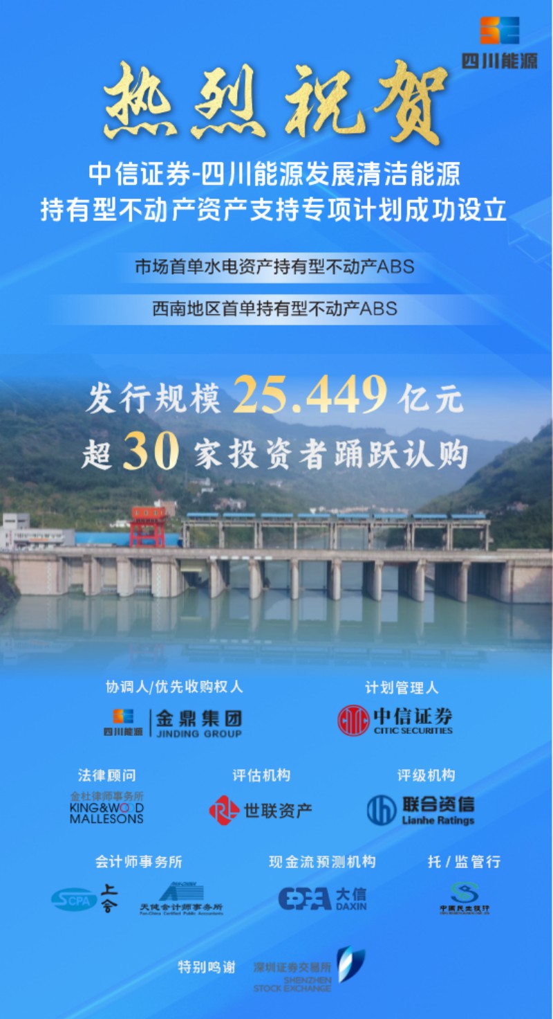 在四川省委、省政府的坚强领导和省国资委的有力指导下,2025年11月6日,“四川能源发展清洁能源持有型不动产资产支持专项计划”在西南联合产权交易所成功摘牌,四川能源发展集团所属金鼎集团顺利完成对盐津撒渔沱等五家水电站项目公司的股权收购工作。