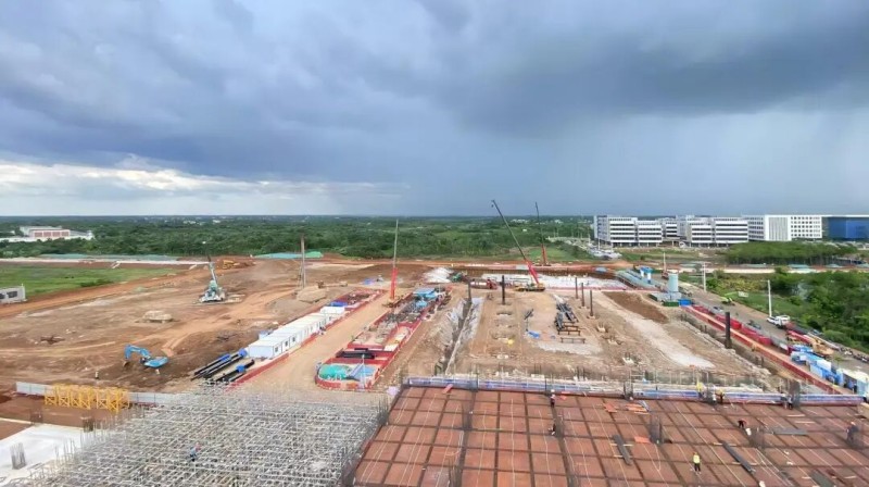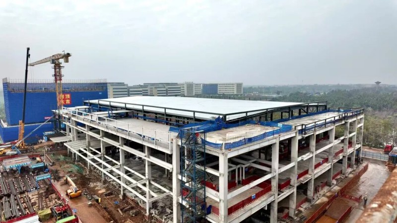 “海南国际智慧物贸云港”项目于今年1月正式启动,建设期间,坚持高标准、严要求,攻克25万立方米回填土、大体量钢结构与节点精度控制等技术难点,采用分区分段与多线并行作业,大幅提升了建设效率,提前15天完成主体结构全面封顶,实现了“封关即封顶”。