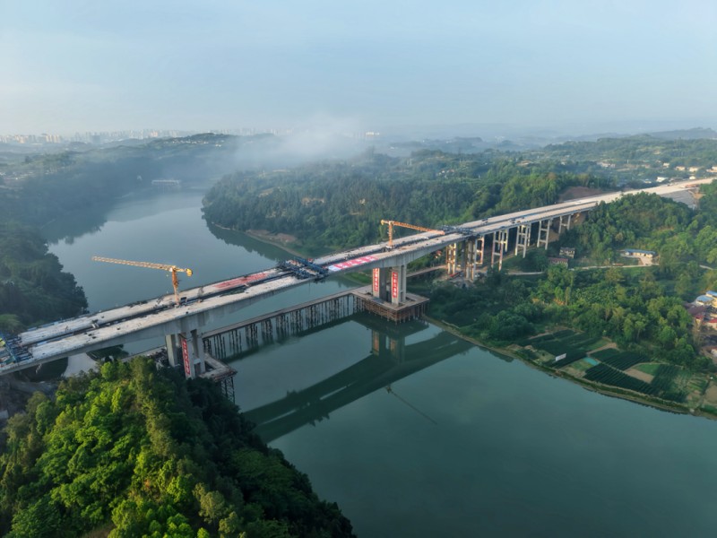 5月25日,铜资高速公路控制性工程——杨柳滩沱江特大桥主桥顺利合龙,为2025年底铜资高速全线通车奠定了坚实基础
