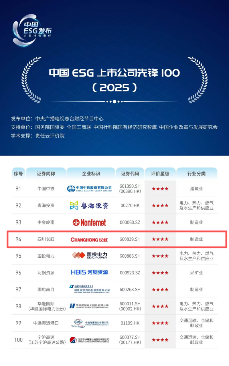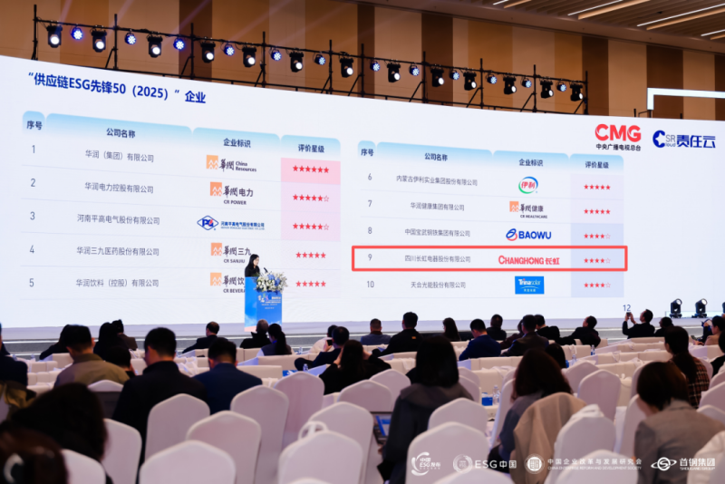 此外,四川长虹凭借在供应链ESG管理方面的优秀实践,首次入选“供应链ESG先锋50(2025)”榜单。