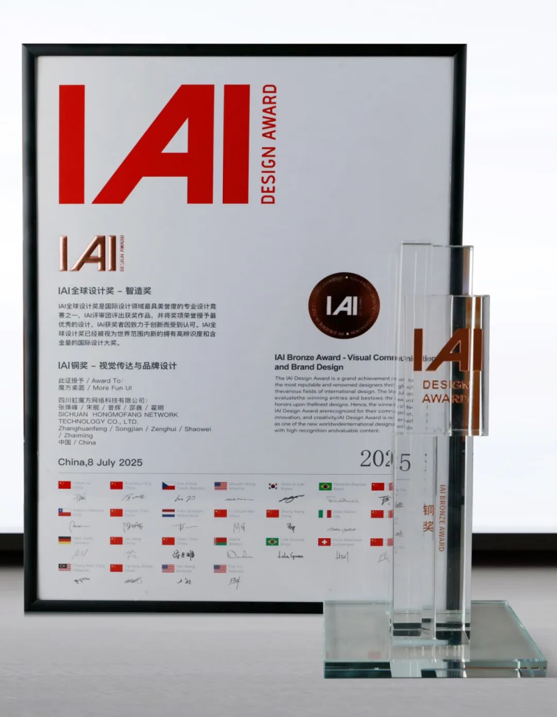 近日,长虹控股集团旗下四川虹魔方网络科技有限公司(以下简称“长虹虹魔方”)自主研发的“魔方桌面”电视系统,在全球设计领域权威赛事——2025年IAI全球设计奖评选中荣获铜奖。该奖项由亚太设计师联盟(APDF)主办,旨在表彰在用户体验、视觉美学与技术创新等方面表现卓越的设计作品。