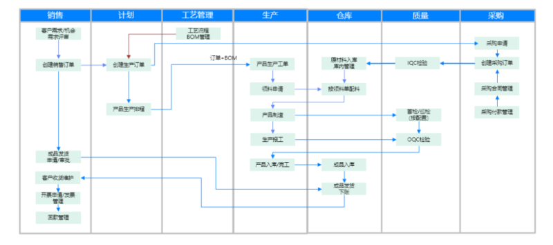 “虹智造”采用“平台+低代码”技术,可以提供基础数据管理、销售管理、生产管理、采购管理、质量管理、仓库管理、设备管理、工夹具管理等核心功能。基于低代码平台底座,“虹智造”既提供共性解决方案,也支持个性化定制,实现销售、采购、计划、生产、库存等关键环节的管理,覆盖企业基于订单驱动生产模式下的全业务流程,通过打通数据壁垒,为管理者提供科学决策依据。