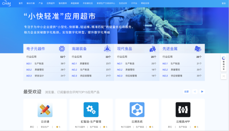 长虹工业互联网双跨平台“小快轻准”应用超市
