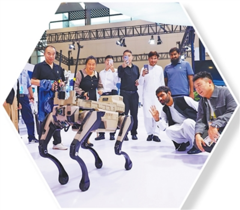 人们与智能机器狗互动。陈冬冬摄(人民视觉)