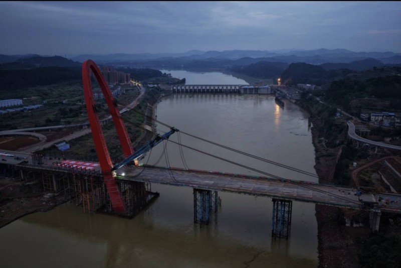 10月29日晚,经过40多个小时的连续施工,四川仪陇县嘉陵江三桥上塔柱顺利完成“空中转身”,创下了同类桥梁转体重量、转体高度的世界纪录。