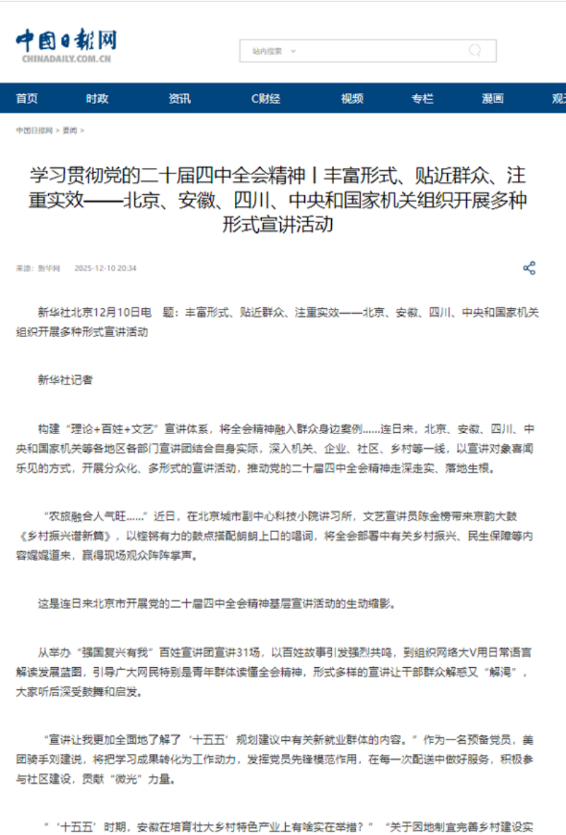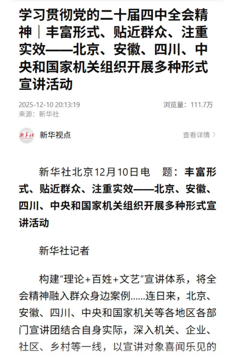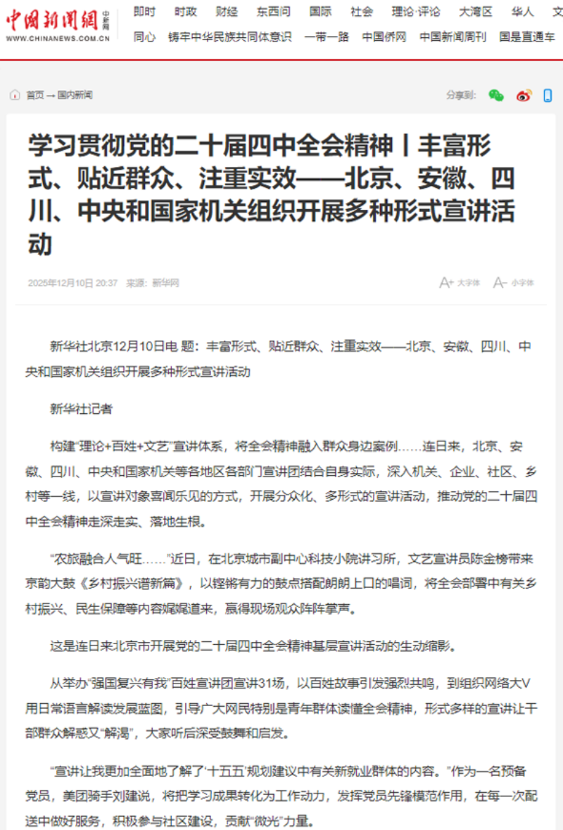 新华社丨丰富形式、贴近群众、注重实效——北京、安徽、四川、中央和国家机关组织开展多种形式宣讲活动