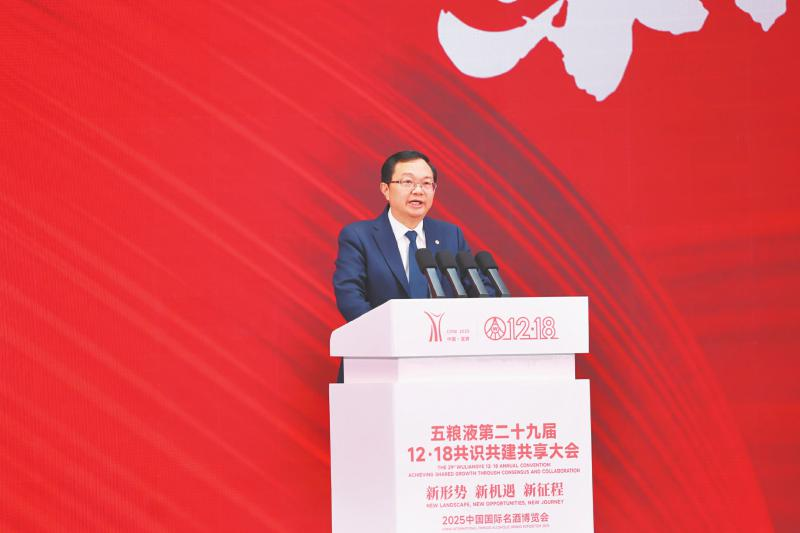 宜宾市政协主要负责人在致辞中表示,五粮液始终是宜宾最亮丽的城市名片、最硬核的产业标杆、最强劲的发展引擎。今年以来,面对复杂多变的市场环境,五粮液坚守匠心、创新求进,在高质量发展的道路上硕果盈枝。未来,宜宾将一如既往、坚定不移支持五粮液高质量发展,将强化政策协同、支持转型升级、拓展发展空间、优化营商环境,尊重市场规律,注重发展质效,持续营造稳定、公平、可预期的发展环境,助力五粮液轻装上阵、从容前行,进一步提升核心竞争力。