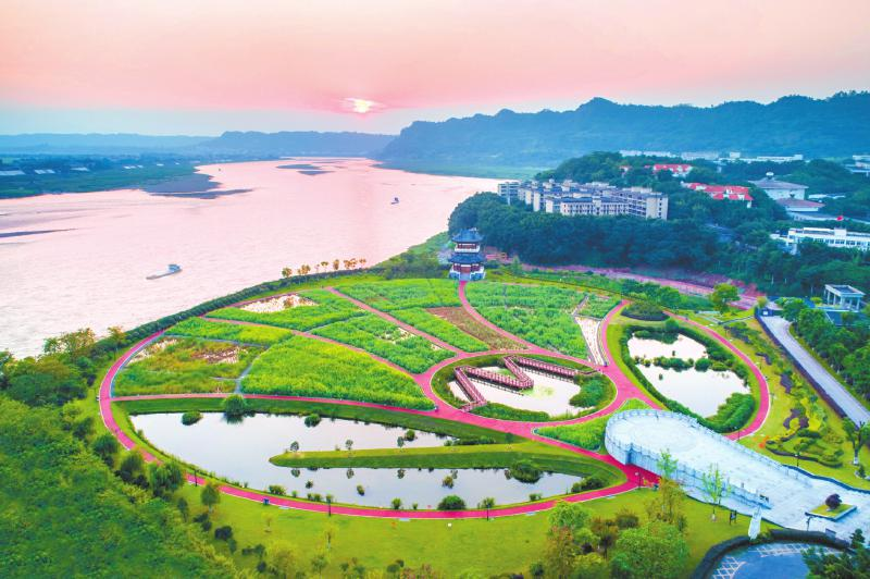 俯瞰五粮液生态湿地公园。