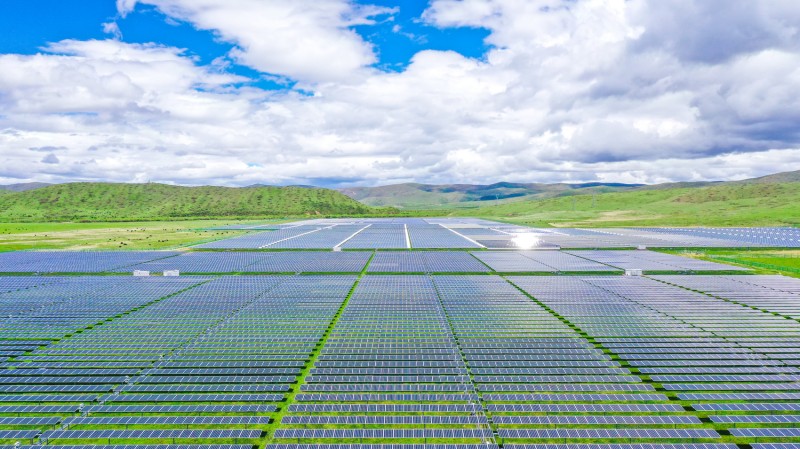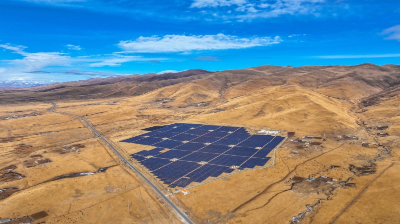 阿坝州阿坝县兰措玛光伏电站航拍画面。(摄/严易程)