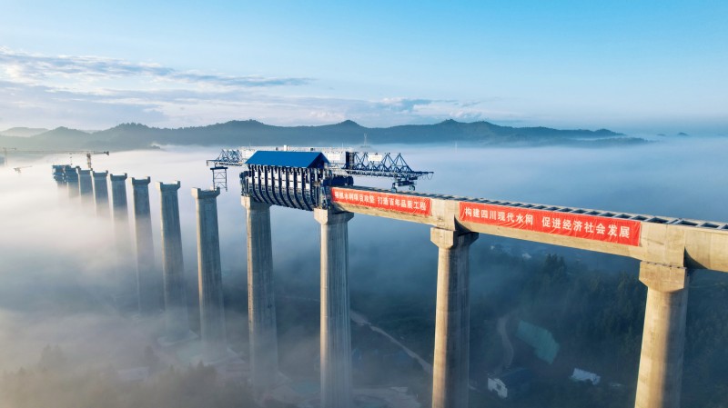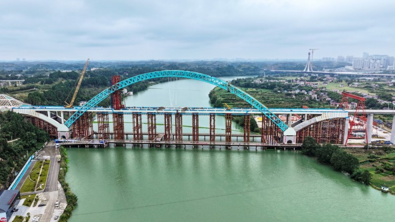成渝中线高铁四川段沱江特大桥合龙场景