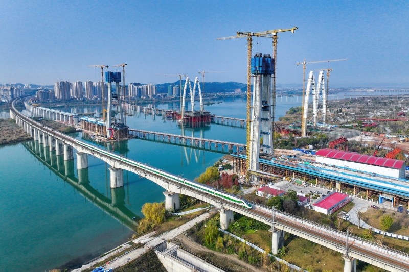 成达万高铁遂宁涪江特大桥合龙现场
