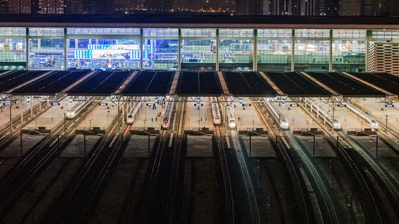 去往攀西、黄龙九寨等旅游热点城市客流火爆,车站在高峰列车运行图的基础上,新成昆铁路共计加开列车42列,川青铁路共计加开列车72列,全力保障热点方向旅客顺畅出行。