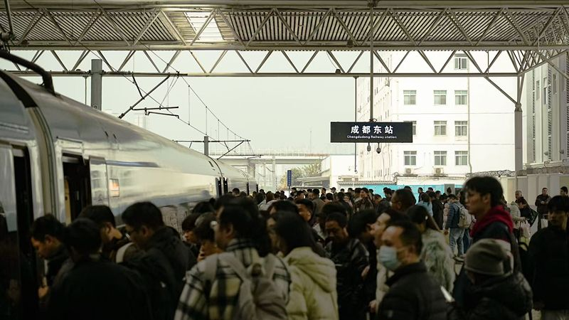 记者从中国铁路成都局集团有限公司成都车站获悉,元旦运输周期内(2025年12月31日至2026年1月4日),成都车站累计到发旅客408.8万人次,其中发送、到达旅客分别为204.2万人次、204.6万人次,日均到发量81.8万人次。客流高峰集中在元旦假期首日(1月1日),当日全站到发旅客103.0万人次,创下历史同期客流新纪录。