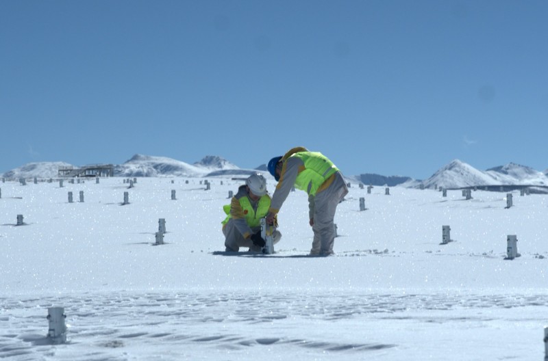 雅砻江流域水风光一体化基地内的新能源项目建设也如火如荼。扎拉山光伏电站施工现场海拔超过4000米,寒风刺骨。