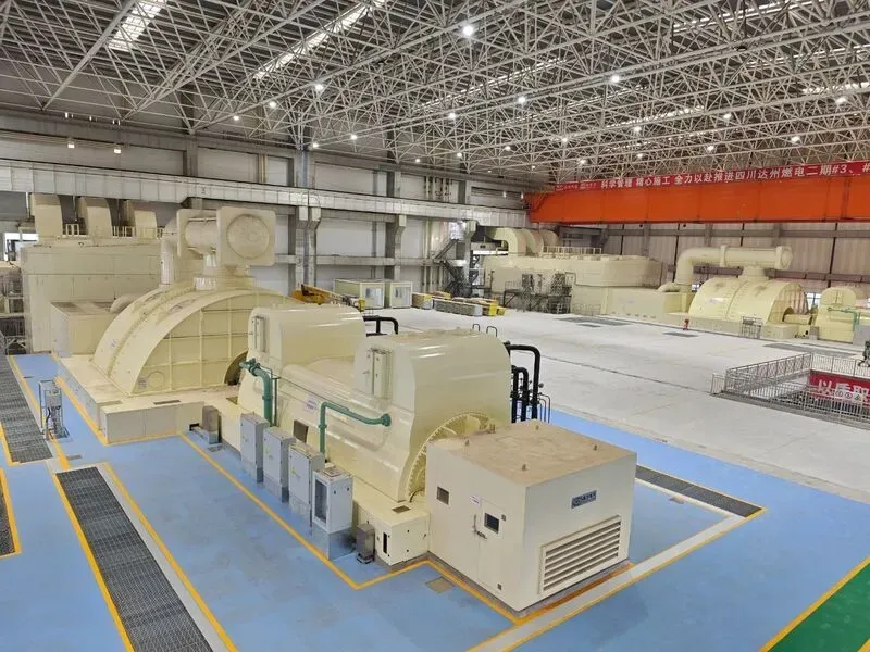 四川达州燃气电站位于达州高新区。一期项目于2015年6月投产,建有2台35万千瓦F级燃气—蒸汽联合循环发电机组,是四川首座燃气电站,运行以来累计上网电量199亿千瓦时。二期项目于2023年11月开工建设,总投资额约34亿元,共建设3号、4号2台74万千瓦H级燃气—蒸汽联合循环发电机组,其中,3号机组已于2025年8月18日投产发电,为达州电网迎峰度夏提供了关键支撑。