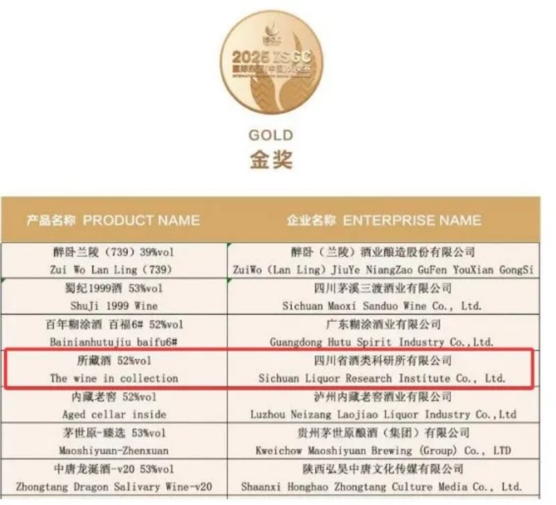 “所藏”酒荣获2025ISGC国际烈酒大奖赛金奖