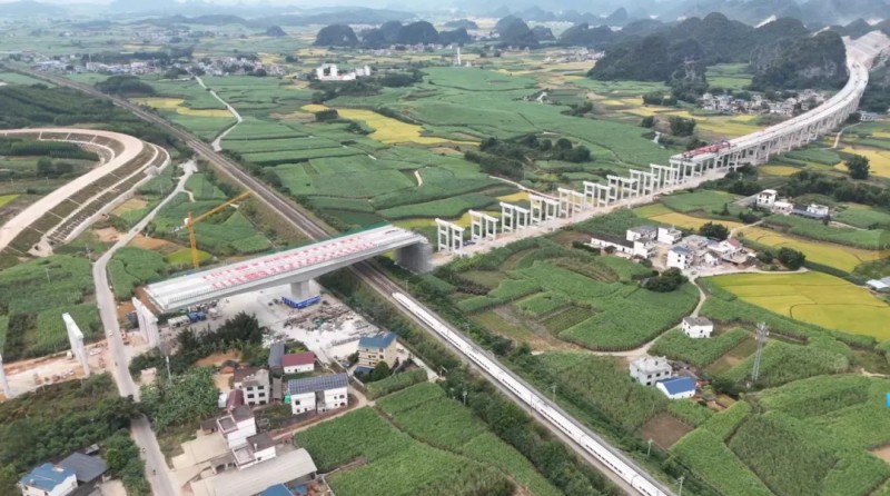 10月23日,由中铁二十三局承建的柳州高速过境线公路上跨衡柳铁路立交桥完成空中转体施工,成功跨越衡柳铁路。此次转体的立交桥,是目前广西体量最大、重量最重的转体桥,标志着该高速项目建设取得重大阶段性突破。据介绍,该立交桥主桥长160米,采用双幅整体式设计,总重量达2.75万吨,相当于1.2万头成年大象的总重量。施工团队采用“先现浇后转体”工艺,先在铁路左侧浇筑梁体,再借助直径13.6米的球铰转台,牵引桥体完成转体。