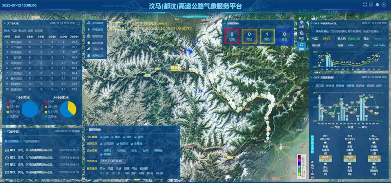 “汶马(都汶)高速专属气象服务平台”相当于为高速公路配备了“气象智慧中枢”,平台深度整合国家站点、区域站点,结合雷达监测、卫星云图及专业数值预报模式,形成全方位、立体化的气象感知网络。
