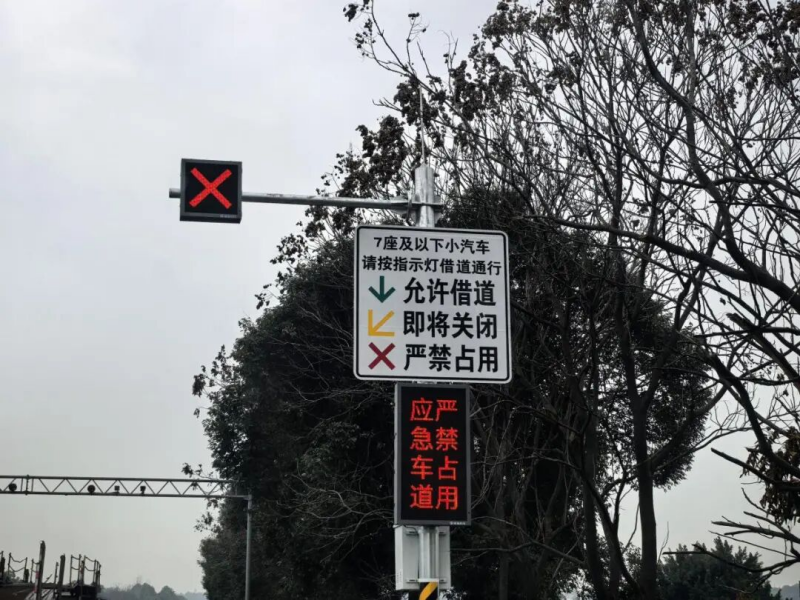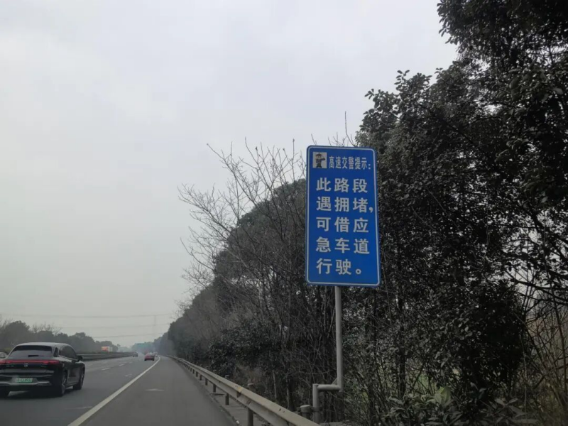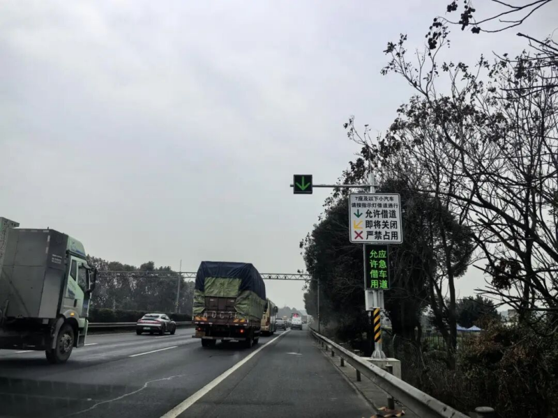 道路拥堵时:遇严重拥堵或突发事故时,调度中心与高速公安会商确认后,将通过机电设备调控信号灯、在LED屏显示“允许借用应急车道”提示,届时社会车辆(七座及以下小汽车)可按指引临时借道。