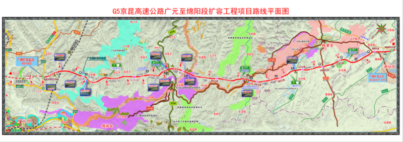 G5京昆高速公路广元至绵阳段扩容工程项目路线平面图