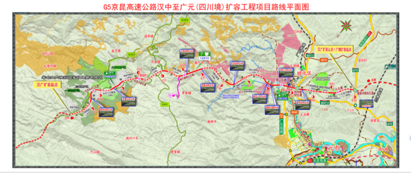 G5京昆高速公路汉中至广元(四川境)扩容工程项目路线平面图
