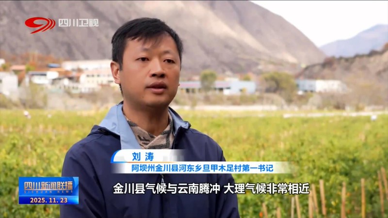 阿坝州金川县河东乡旦甲木足村第一书记 刘涛:金川县气候与云南腾冲、大理气候非常相近,适合发展工业辣椒产业。经调研论证,我们采取试验种植,示范种植,推广种植三步走,发展该产业。(目前)辣椒正常开花结果,达到预期效果,证明工业辣椒适合在金川县种植。