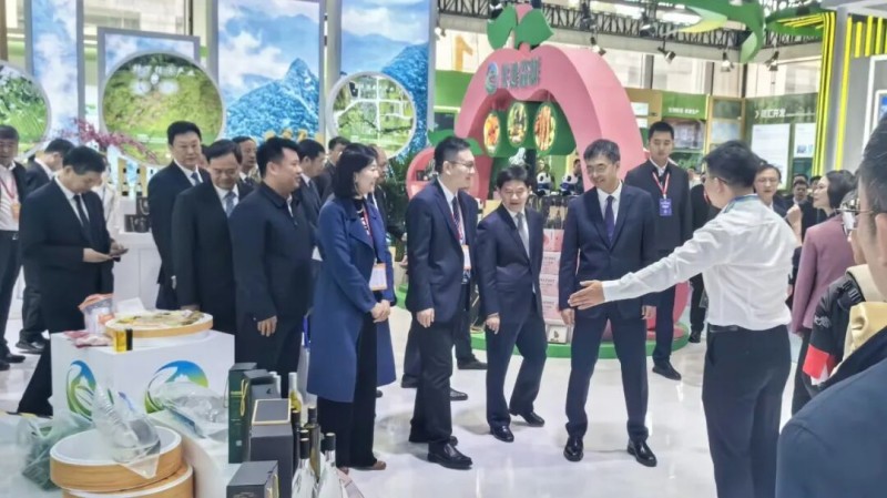 11月23日展会进入深度互动阶段,“铁建森鲜”展区持续高人气。国家林业和草原局(国家公园管理局)改革发展司副司长苏祖云到访展位,察看生态产品、数智化成果及林业设备,对企业生态产业发展表示关注。参展嘉宾通过图文展板、视频深入了解龙泉山、沙漠锁边等项目成效,互动氛围浓厚。“铁建森鲜”水蜜桃系列产品、橄榄油及灵芝等中药材成为焦点,不少嘉宾品尝察看后咨询原料供应等信息;各类苗木及数智化设备也吸引各地林业部门及企业代表,围绕种植技术、设备推广交流。