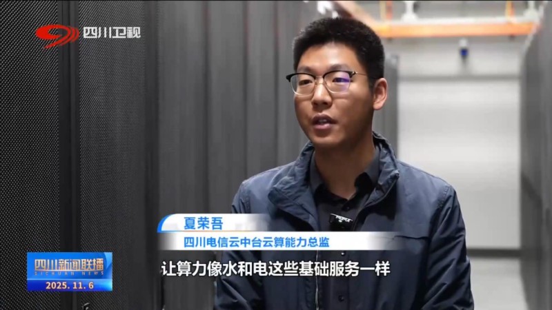 四川电信云中台云算能力总监 夏荣吾:让算力可以像水和电这些基础服务一样,通过按需、按量的这种模式,来灵活供给我们的各项企业。四川省内已经建成云边端协同、算存运融合的“2+5+21+X”一体化算力体系。