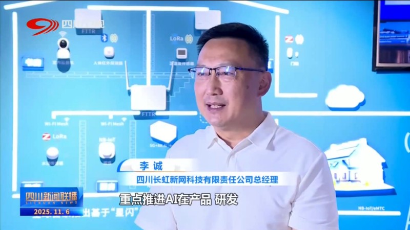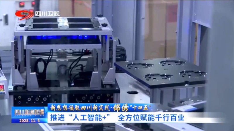 习近平总书记指出,要积极推动人工智能科技创新与产业创新深度融合,赋能经济社会高质量发展。四川积极落实,人工智能正为全省带来产业发展的新动能。在绵阳长虹新网科技的生产车间里,Wi-Fi自动化机械手正忙着主板的抓取与校准,每1到2分钟就能完成一台设备的测试,让产能提升了50%。而依托通讯技术研发的FTTR产品则为电脑、电视等终端提供高速通道。目前,平均每天生产4至5万台设备,远销印度以及欧洲、拉美等地。