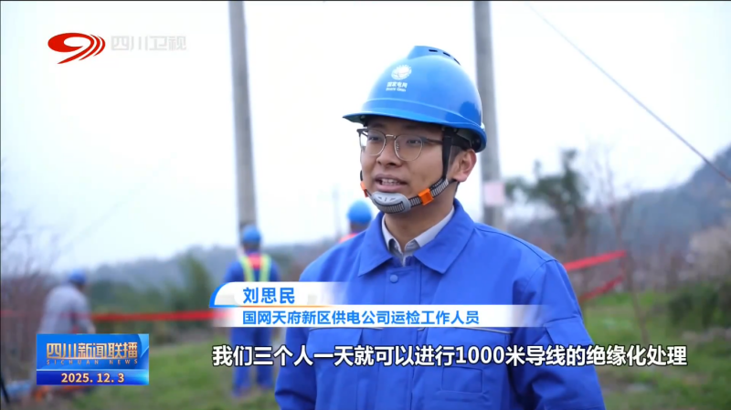 国网天府新区供电公司运检工作人员 刘思民:现在用这个机器人,我们三个人一天就可以进行1000米导线的绝缘化处理,效率得到明显提升。