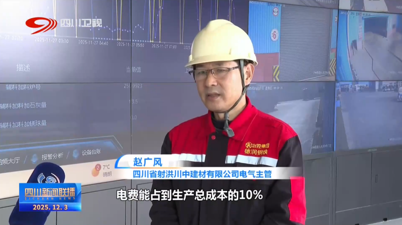 四川省射洪川中建材有限公司电气主管 赵广风:每月用电量大约在2000多万度,电费能占到生产总成本的10%。