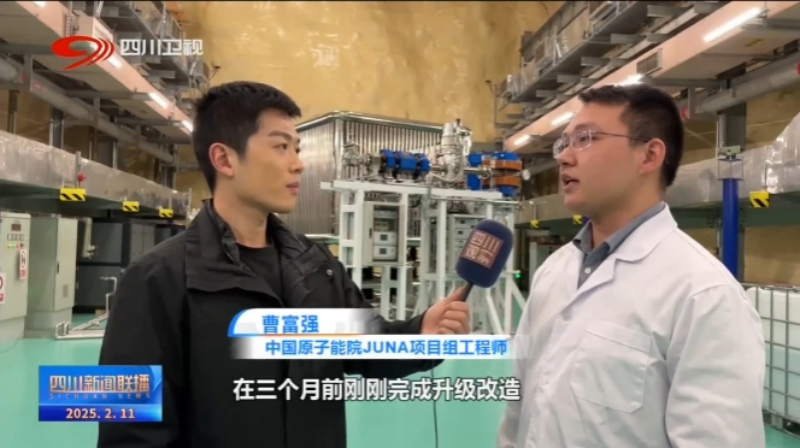 中国原子能院JUNA项目组工程师 曹富强:核天体物理在微观世界核物理和宏观世界天体物理、天文学之间架起一座“桥梁”,像我们身后这台设备,在三个月前刚刚完成升级改造,能够给原子核更多能量,撞击另一个原子核,这就能更好地探究元素是怎么生成的。我们项目组成员在氟19到氖20的突破反应实验结果中,首次测量到一个新的共振,这会帮我们更好地了解我们宇宙中钙元素的产生机制。